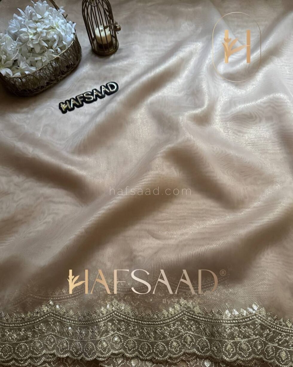 Presenting an exclusive designer creation from Nice Creation, Design No. NC – 5441. This stunning saree is crafted from Heavy Soft Nylon Organza, offering a graceful drape. It features intricate sequins and Zari embroidery work throughout, creating a dazzling effect. The ensemble is completed with a matching blouse in Soft Satin, adorned with coordinating Zari and sequins embroidery. This exquisite and radiant saree is available for β‚Ή4,698.00, perfect for making a statement.
